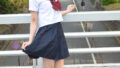 視線の位置と内股の立ち姿が絶妙に可愛らしさを引き立てる一枚。