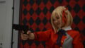 正面から銃を向ける強い構図ながら、表情には硬さよりも芯の強さを感じさせるカットです。
