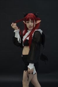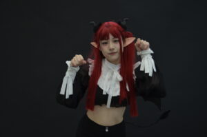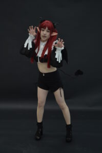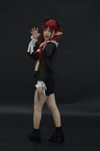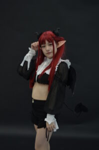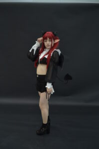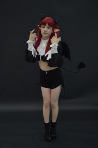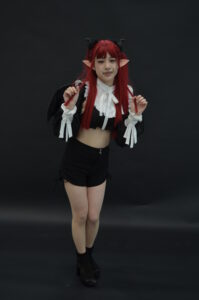 全身を引きで捉えた一枚は、リズきゅんの「サキュバスとして現れたばかりの瞬間」を意識した構図。