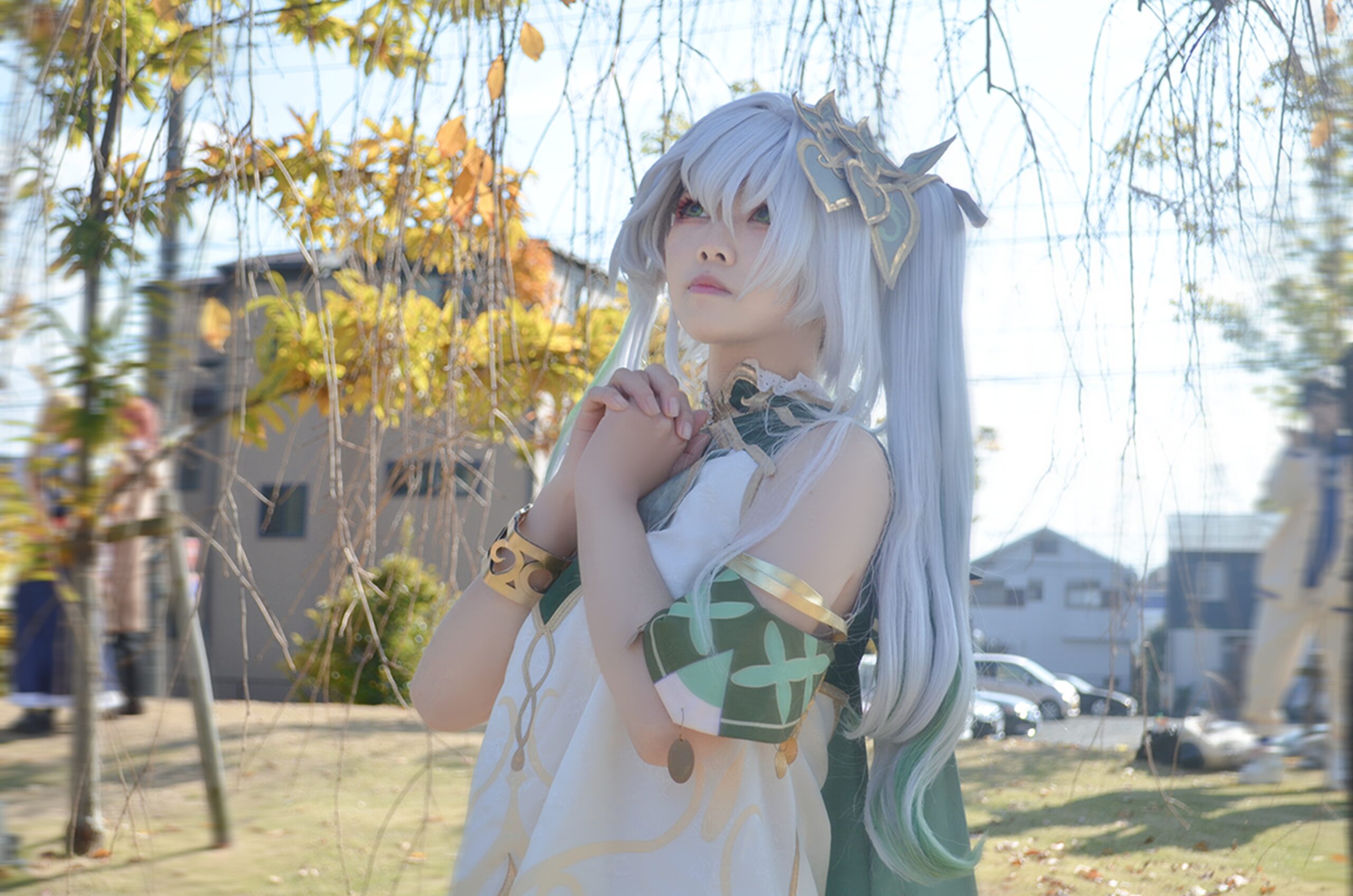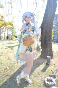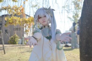 コスプレイヤーさんの柔らかな微笑みと動きのある構図が、ナヒーダの包容力と優しさをより深く伝えています。