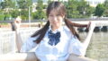 彼女の内面的な深さを感じさせるこのカットは、新宿中央公園の自然の中で、彼女のシンプルな制服姿が一層際立ち、清楚な魅力を強調しています。