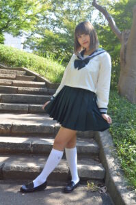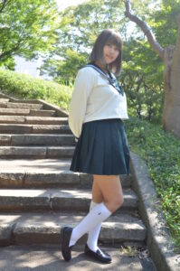 モデルさんの自信を感じるしっかりとした立ち姿が、制服写真に大人っぽさをプラスしています。
