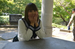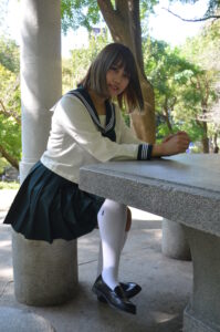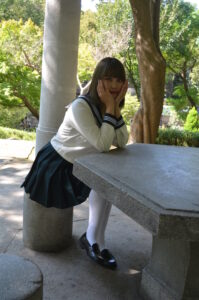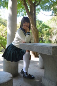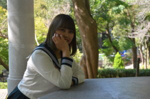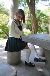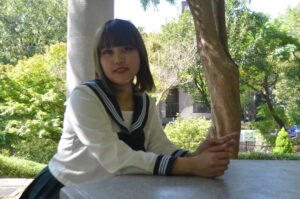 制服の柔らかい印象と富士見台の静かな環境が、しっとりとした世界観を生み出す。