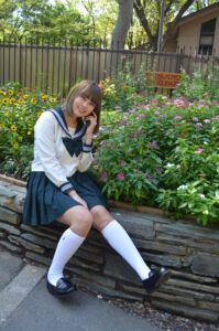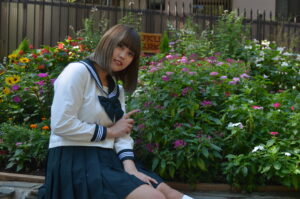新宿中央公園の花壇で撮る!「可愛さ」を引き出すセーラー服ポートレートの撮り方と構図設計