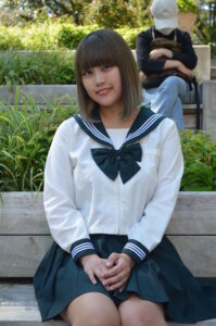 正面からの撮影で、制服姿の純真さが際立つ一枚。