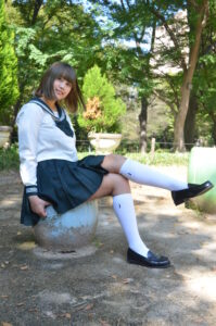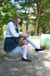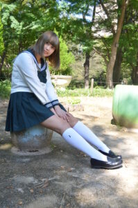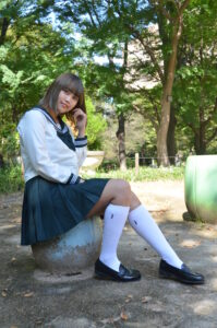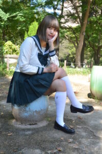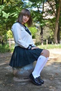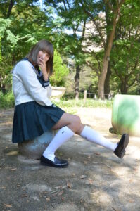 声優音響監督から学んだ「人を魅了するセーラー服ポートレート」新宿中央公園・丸太椅子編