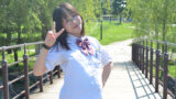 真ん中の橋の上にしゃがんだ彼女の仕草は、制服ならではの“等身大の可愛らしさ”を最も素直に切り取った一枚。