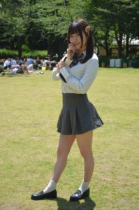 芝生の緑と制服の色味のバランスを意識しながら、モデルさんの個性に合ったストーリー性のある構図を狙うことで、写真に奥行きと感情を持たせることができます。