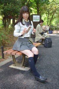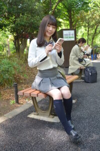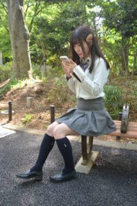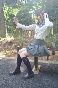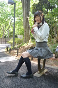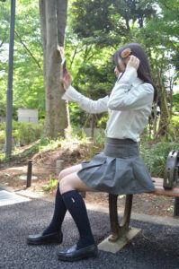 新宿中央公園のベンチ撮影では、背景の緑や木漏れ日が制服姿の透明感を引き立てるロケーションとしておすすめです。