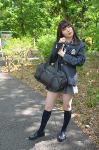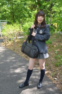 バッグを肩にかけたポーズが制服姿をより立体的に見せてくれます。