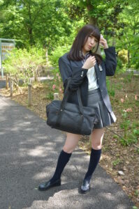 スクールバッグを持たず、制服姿の魅力をシンプルに表現した一枚です。