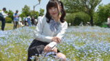 ネモフィラの広がりとともに、彼女の魅力をまっすぐ届ける構図です。