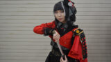 近距離構図により、衣装の細部と内面の鋭さが凝縮され、キャラクターの魅力がより立体的に伝わる写真です。